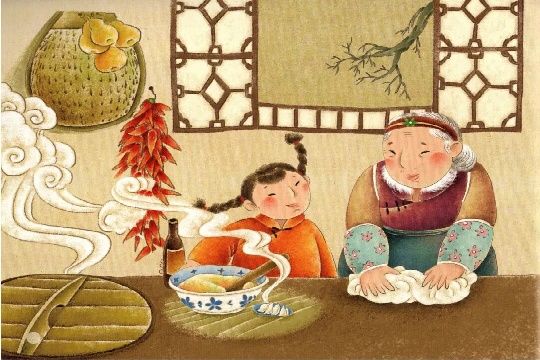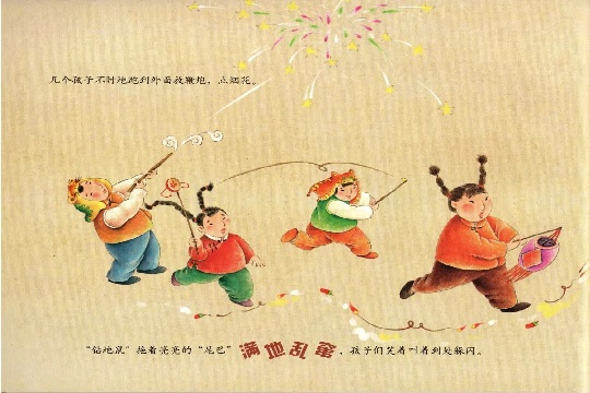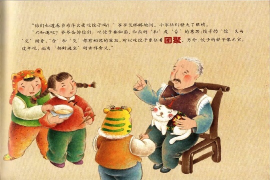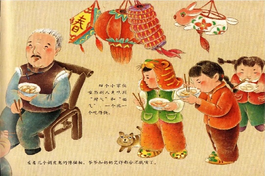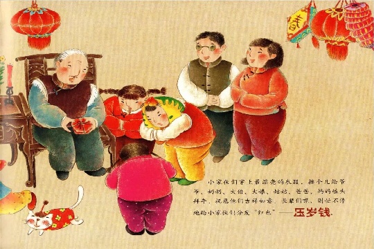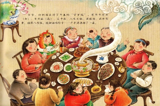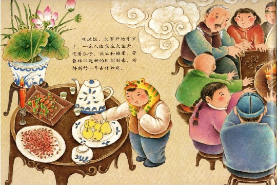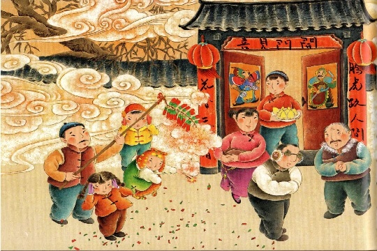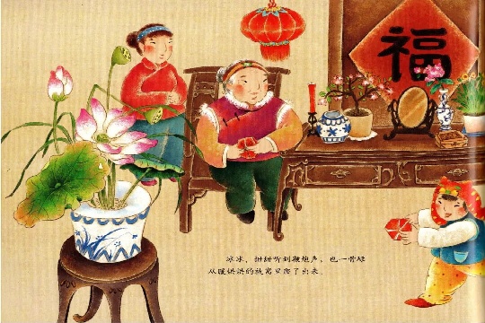 你听!窗外传来了“噼里啪啦”的声音,是谁家在放鞭炮呀?快看,有个小娃娃正拉着爷爷的手,踮着脚贴春联呢!他们家的年夜饭有什么好吃的?年兽真的会来吗?让我们一起听一听吧!