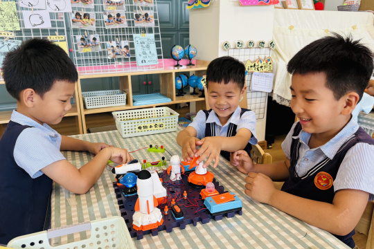科学探索紧密联系幼儿一日生活,孩子们沉浸在“光影故事”“气球小车”“流星雨”“滚动水车”等充满儿童化、生活化的操作活动中,借助各种建构积木探索平衡秘密,操作气球小车感受空气动力的神奇,在直接感知、亲身体验、实际操作中,体验发现的惊喜、探究的乐趣。
