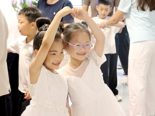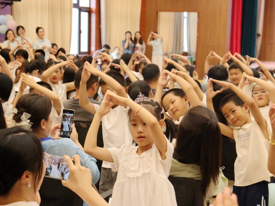 全体幼儿来到爸爸妈妈面前,将对爸爸妈妈深深的爱意化作一个个温暖的动作,是他们成长路上用行动诠释“感恩”的重要一课。