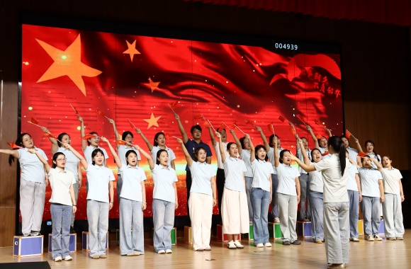 大会在庄严而激昂的合唱声中拉开帷幕。全体教师齐声高唱《没有共产党就没有新中国》《歌唱祖国》,用歌声表达对祖国的热爱与对教育事业的赤诚。随后,王庆园长发表热情洋溢的致辞。向全体教职工致以节日的诚挚问候,充分肯定了过去一年大家在教育教学、保育管理、服务保障等方面取得的优异成绩,并强调教师是立园之本、强园之基,希望全体教师继续以德立身、以爱育心,继续发扬“勤朴博学 为人师表”的教风,为幼儿园高质量发展贡献力量。