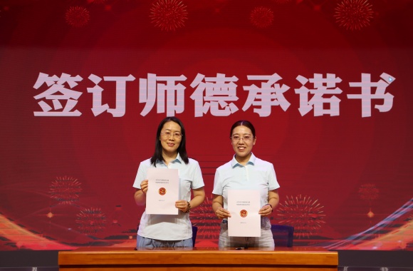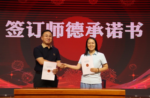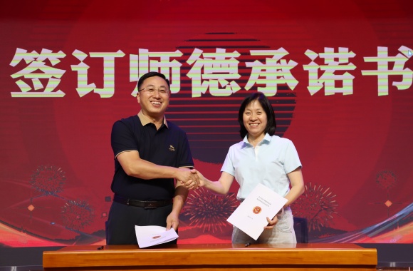 在庄重的氛围中,签订了《师德师风建设责任书》《师德承诺书》,郑重承诺恪守职业道德、规范从教行为,以实际行动践行“学高为师、身正为范”的教育精神。