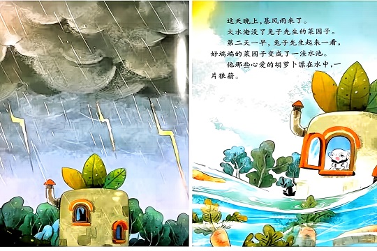 兔子先生有一个大菜园,种满了胡萝卜,但它从不与其他小动物分享。一场暴风雨将菜园变成了水池,小动物们不计前嫌,分享自家的蔬菜,并齐心协力帮助兔子先生重建菜园。