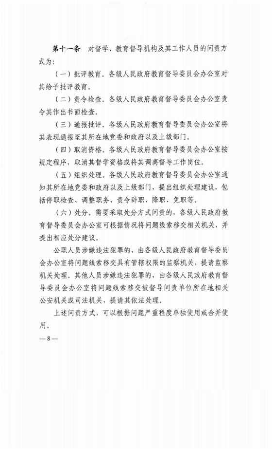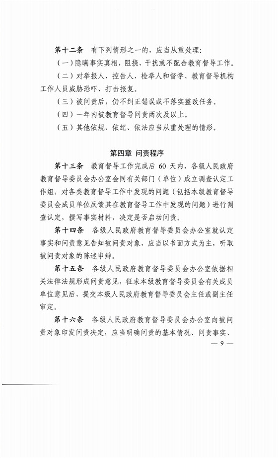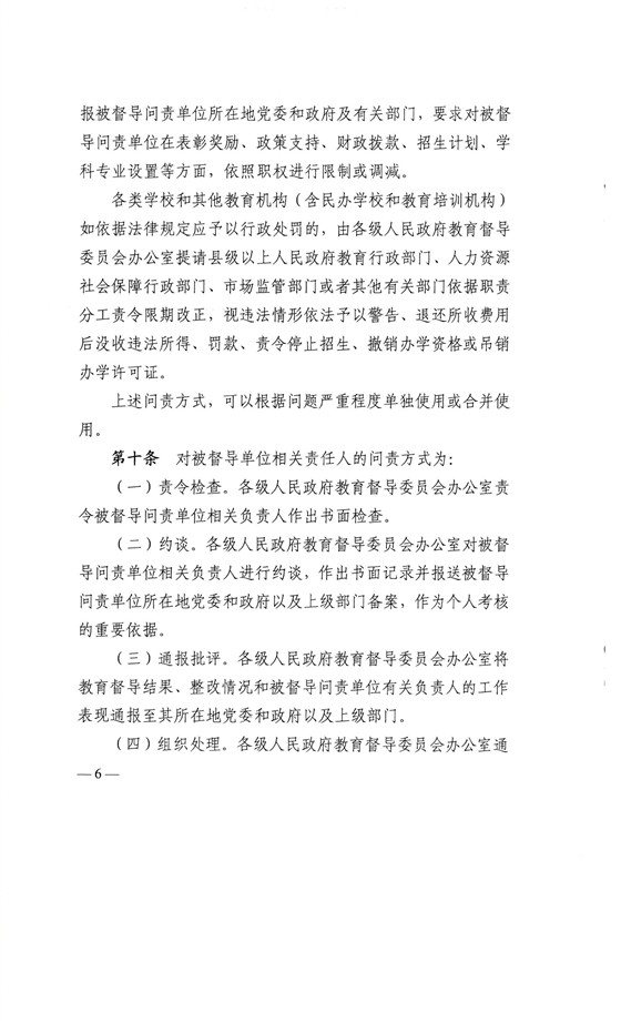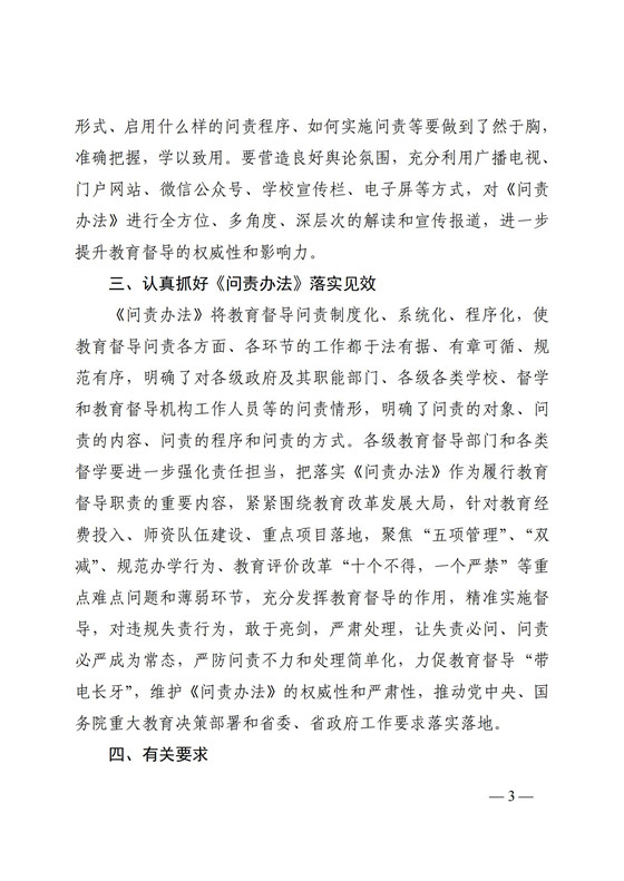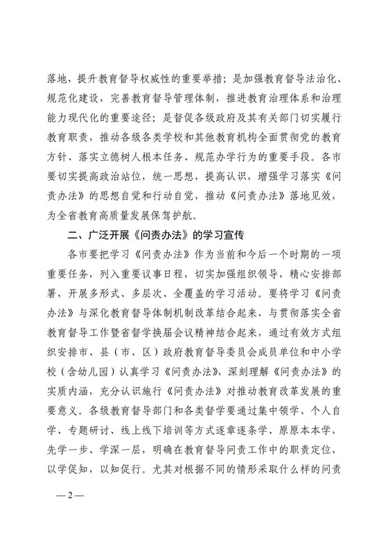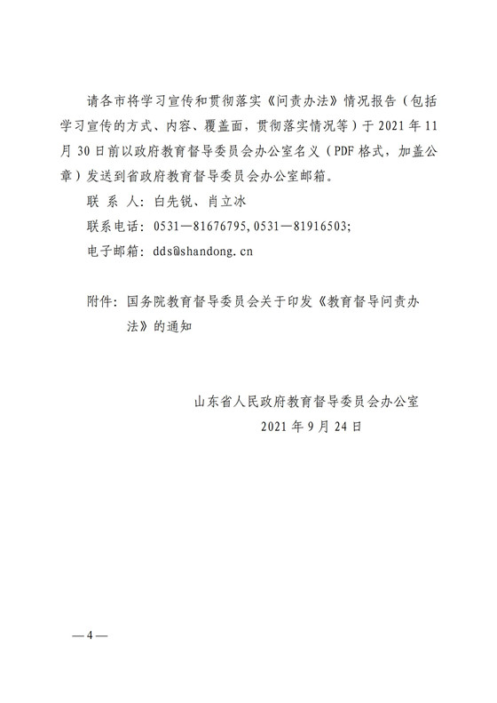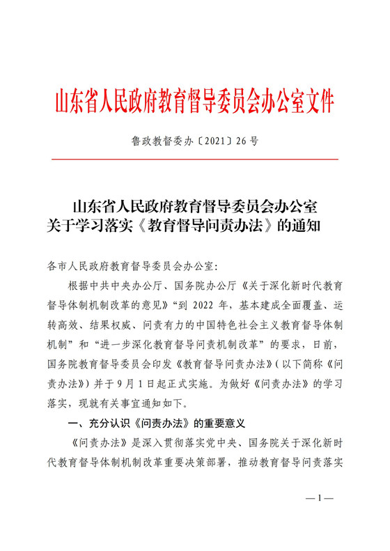 山东省人民政府教育督导委员会办公室 关于学习落实《教育督导问责办法》的通知